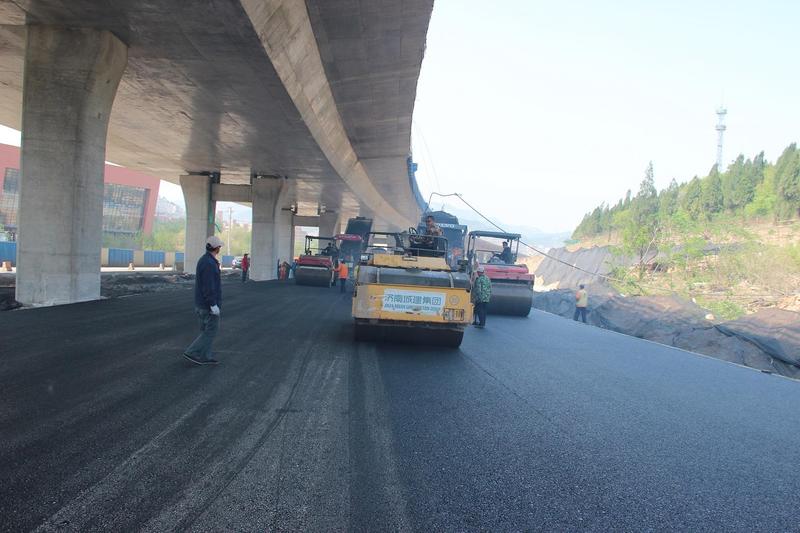 匯通公司攤鋪項目部提前做好施工計劃,合理安排人員、機械,明確職責分工,攪拌站、設備處與攤鋪項目部密切配合,確保攤鋪順利進行。