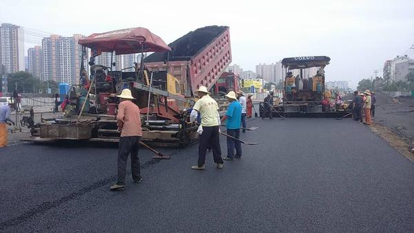 6月23日,二環南四標進行立交橋下快車道瀝青攤鋪。快車道底面層用粗粒式Ac-25面積為12000平方,中面層用中粒式Ac-16面積為14300平方。攤鋪前攤鋪項目部提前計劃,合理安排,共組織4臺攤鋪機,2臺壓路機;攤鋪過程中現場施工人員緊密配合,加強對每一環節檢測控制與管理,保證了攤鋪質量。預計到26日完成此次攤鋪任務。