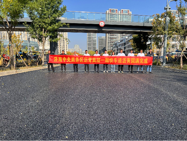 10月24日,隨著最后一車瀝青混合料碾壓完畢,濟(jì)南市中央商務(wù)區(qū)瀝青面層一期快車道瀝青上面層攤鋪工作順利完成。 濟(jì)南中央商務(wù)區(qū)瀝青面層一期包含新濼大街、茂嶺二號(hào)路、茂嶺三號(hào)路、規(guī)劃二號(hào)路、規(guī)劃一號(hào)路、天辰路共6條地面道路,道路總長(zhǎng)度8377米,面積134401平方,瀝青總重13440噸。 濟(jì)南中央商務(wù)區(qū)瀝青面層一期項(xiàng)目中標(biāo)內(nèi)容只包含瀝青上面層攤鋪,基層由其他單位施工,項(xiàng)目部在進(jìn)場(chǎng)之初就嚴(yán)格把控基層施工質(zhì)量,積極配合相關(guān)單位處理基層病害,確保瀝青面層成形質(zhì)量。在施工過程中道路兩側(cè)地塊施工項(xiàng)目及居民眾多,項(xiàng)目部前期縝密策劃交通組織方案,提前發(fā)布施工公告通知周邊居民及單位,將交通擁堵降至最
