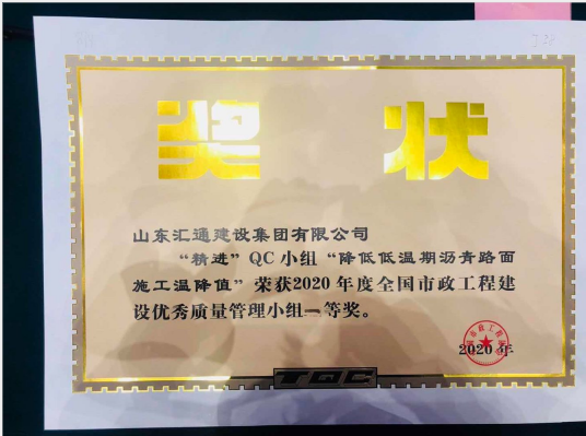 近日,由山東匯通建設(shè)集團有限公司組建的“飛躍”和“精進”QC小組參加了中國市政協(xié)會舉辦的2020年度全國市政工程建設(shè)優(yōu)秀質(zhì)量管理評比交流會,并在100多個參會小組中脫穎而出,雙雙榮獲全國市政工程建設(shè)優(yōu)秀質(zhì)量管理小組一等獎。 此次QC評比交流會中,山東匯通建設(shè)集團有限公司組建的“飛躍”QC小組發(fā)布的“降低瀝青混合料生產(chǎn)燃氣消耗量”和“精進”小組發(fā)布的“降低低溫期瀝青路面施工溫降值”兩個課題,在該小組成員努力及公司領(lǐng)導(dǎo)和技術(shù)質(zhì)量部的指導(dǎo)之下,按時提交了此課題的活動成果,并在發(fā)布會上發(fā)揮出色,綜合評分名列前茅,為公司爭得榮譽。 此次成績的取得,正是源于項目部員工日常工作的積累,對細節(jié)的把握和