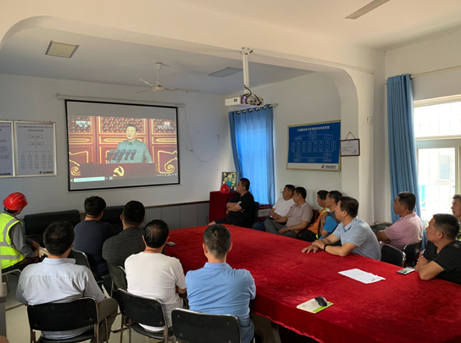 匯通黨總支成員袁鵬在衢州項目部觀看直播;王德慶在沭陽項目部觀看直播;蘆大偉在大西環項目部觀看直播。匯通所有項目部全部組織觀看直播:黃河大道項目部、建材生產基地、S103旅游公路項目、郭店市政路項目部、智慧物流園項目部、瀝青南站、飛躍大道項目部、電工所北路項目部、旅游路東延項目部、連云港金海路項目部、瀝青東站、沭陽項目部、攤鋪項目部、繞城高速公路二環線西環段項目部、霍邱產業園項目部、衢州項目部、阜陽潁泉區項目部、泰安環山路項目部,18個項目部共組織近三百人觀看。